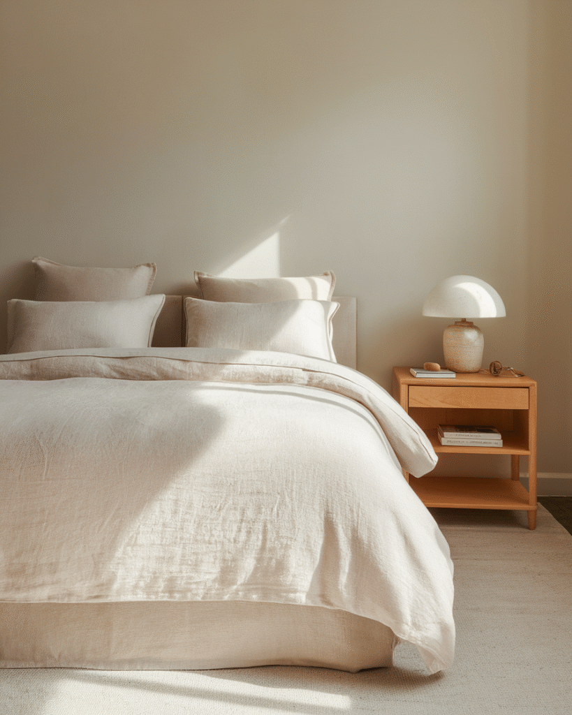 Bedrooms in 2025 are becoming softer and more comforting which is why airy neutrals are everywhere. Think creamy whites that look almost whipped, warm beiges that feel like sunlight on a quiet morning, and soft taupes that make you want to sink into your bed and relax. Layered linens are the heart of this trend. A simple bed instantly looks inviting when you build it with linen sheets, a chunky throw, and soft pillows that feel lived in. Natural wood nightstands, a simple lamp with warm light, and maybe a woven basket at the foot of the bed make the entire room feel peaceful and breathable. It is the kind of bedroom that helps you unwind the minute you walk in.