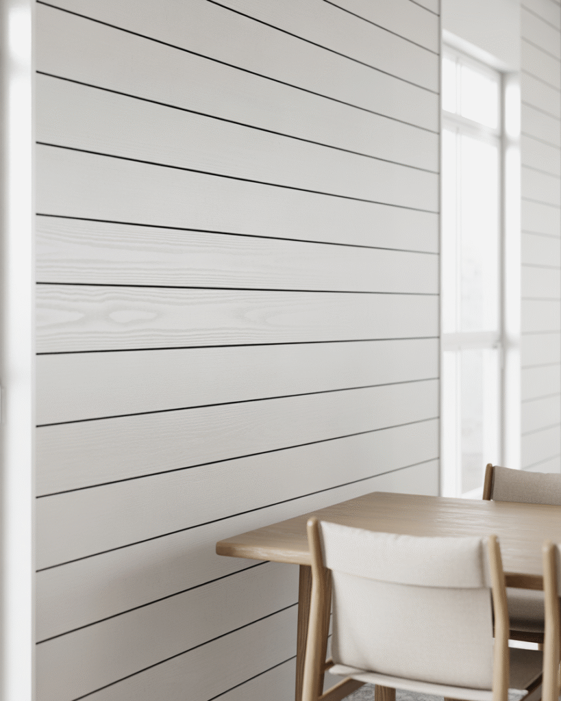 Wide plank white shiplap is perfect for anyone who loves a clean, bright, minimalist room. The crisp white backdrop makes furniture and artwork stand out and the subtle texture on the wall keeps the space from feeling flat. This style is especially beautiful in Scandinavian inspired homes where natural light, simple designs, and open space are the main focus.