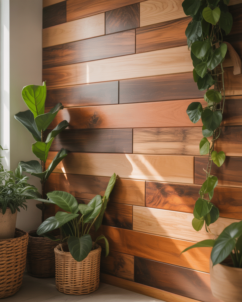 Natural wood shiplap instantly brings warmth and an earthy feel into a room. The exposed wood grain becomes a design feature all on its own which adds richness to the space without needing much else. It works beautifully with plants, cozy textiles, and neutral tones. This is a great choice for anyone who loves a grounded, organic, nature inspired atmosphere.