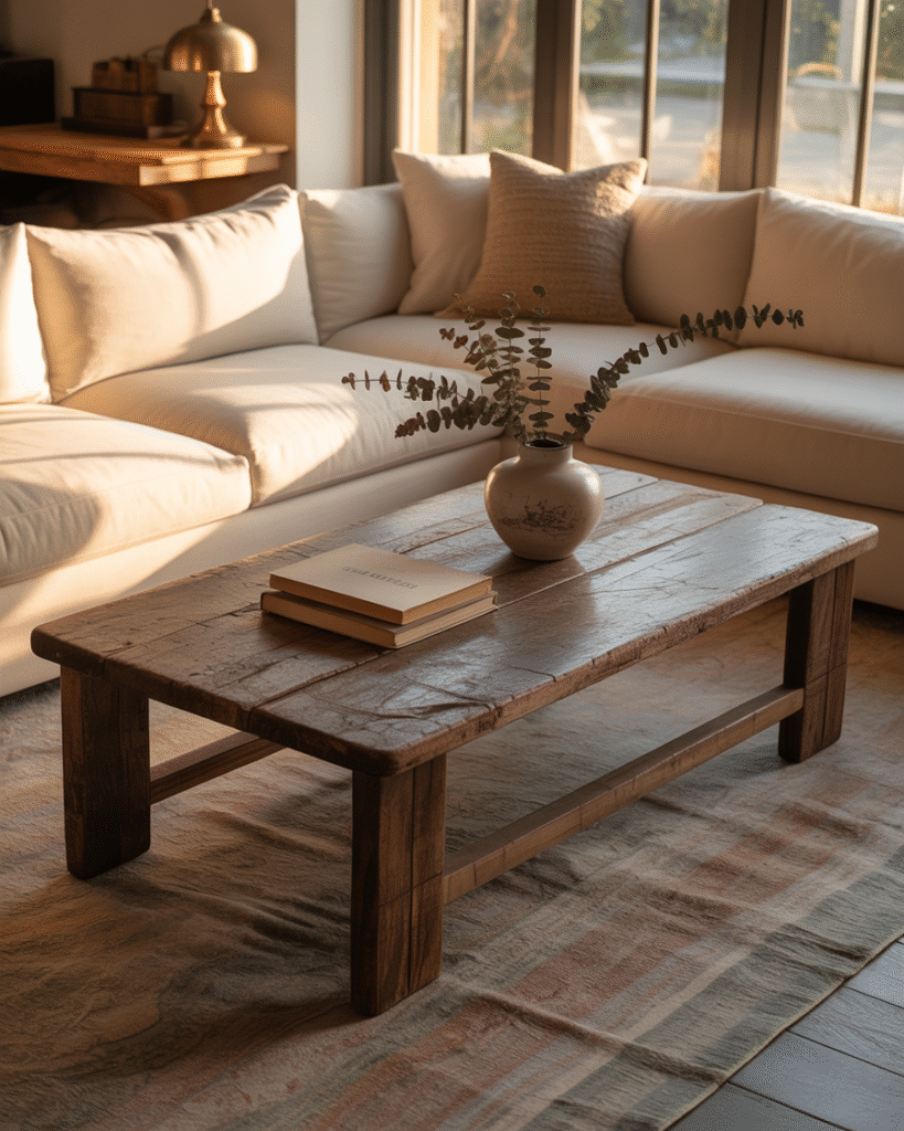 1. Modern Sofas with Antique Wood Tables