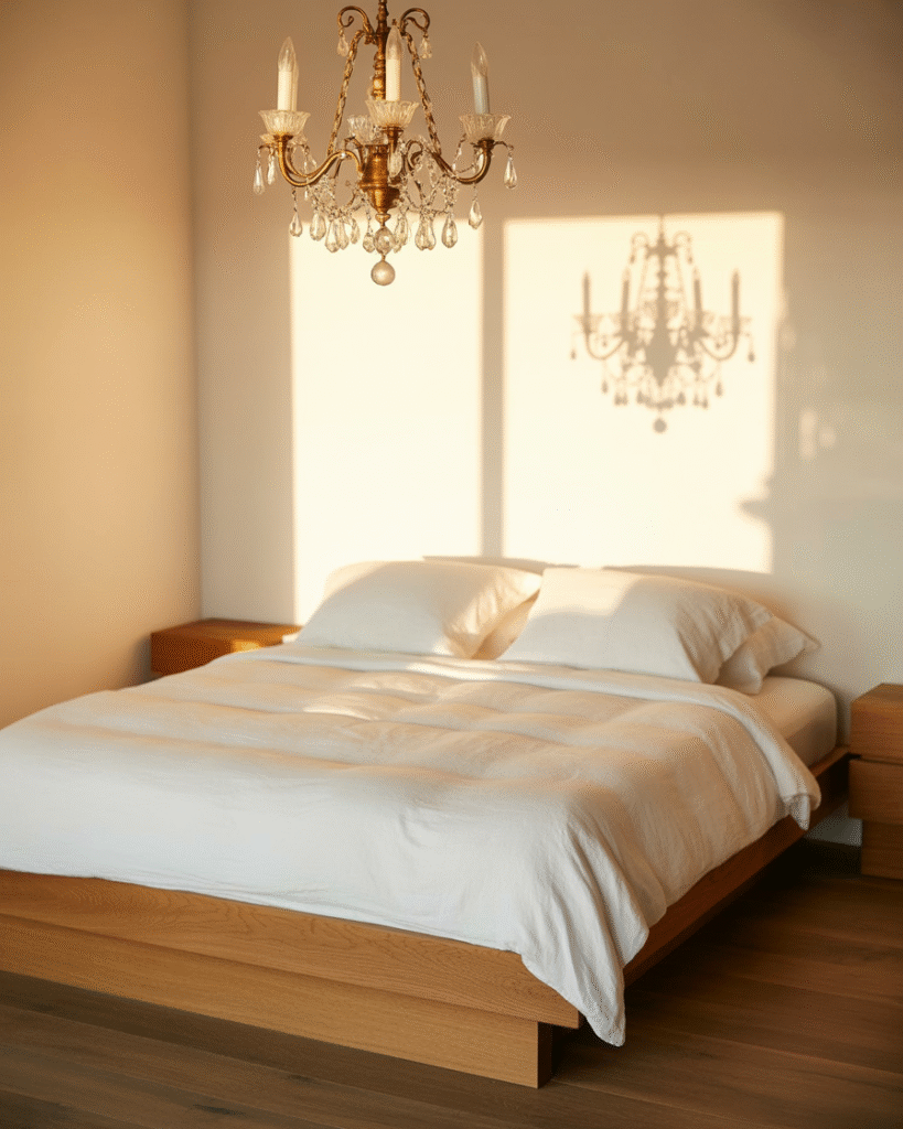 Many women are discovering how peaceful a minimalist bedroom feels when they add vintage lighting. Think clean bedding, simple shapes, and uncluttered surfaces paired with a brass chandelier or an old table lamp that gives off a soft golden glow. The mix brings a sense of calm while still offering something beautiful to look at. The vintage lighting adds personality and makes the room feel collected instead of plain. It is a perfect blend for anyone who wants a quiet space that still has soul.
