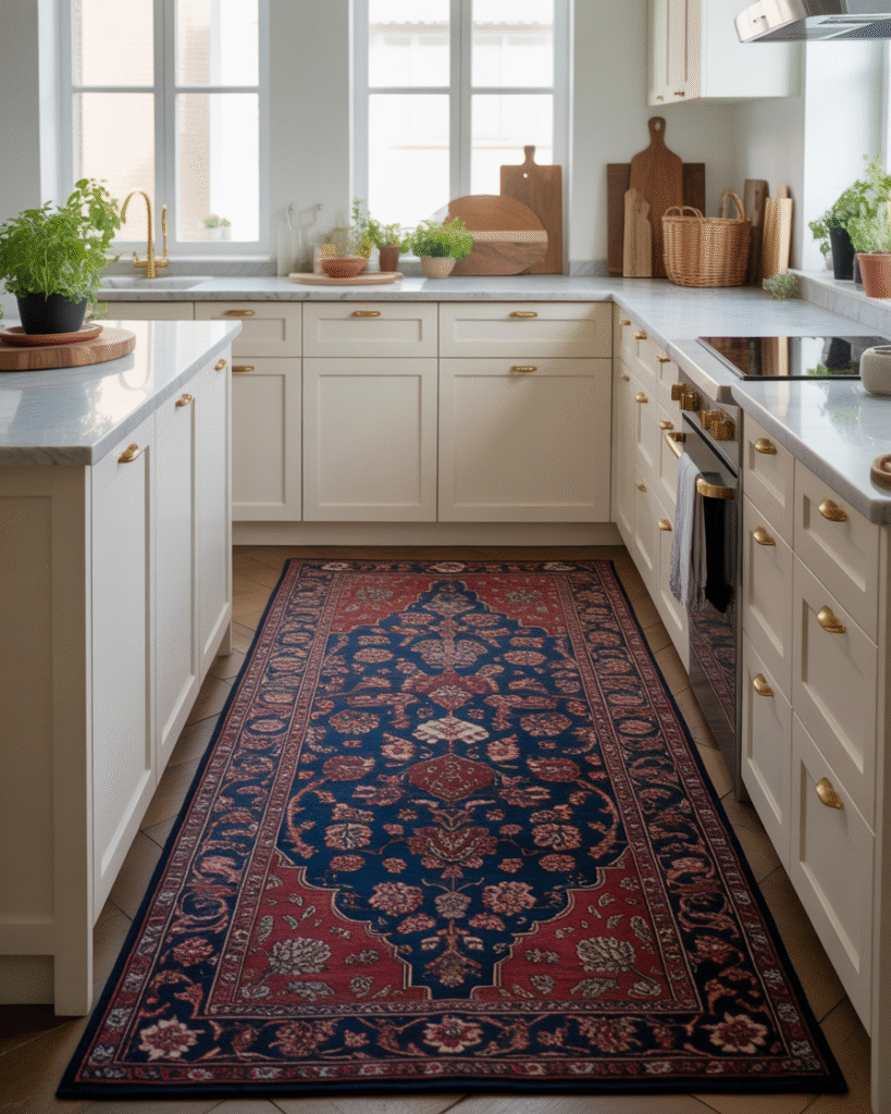 3. Sleek Kitchens with Traditional Rugs