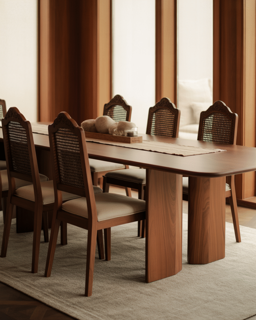 Women who love hosting at home are blending modern tables with traditional dining chairs. The chairs bring a sense of comfort and warmth which makes people want to sit longer. The modern table keeps the room feeling fresh and current. The combination is incredibly inviting because it feels both stylish and familiar. It also helps break up the stiff look that can happen when everything matches perfectly. This trend works well in big dining rooms or even small spaces where every detail matters.