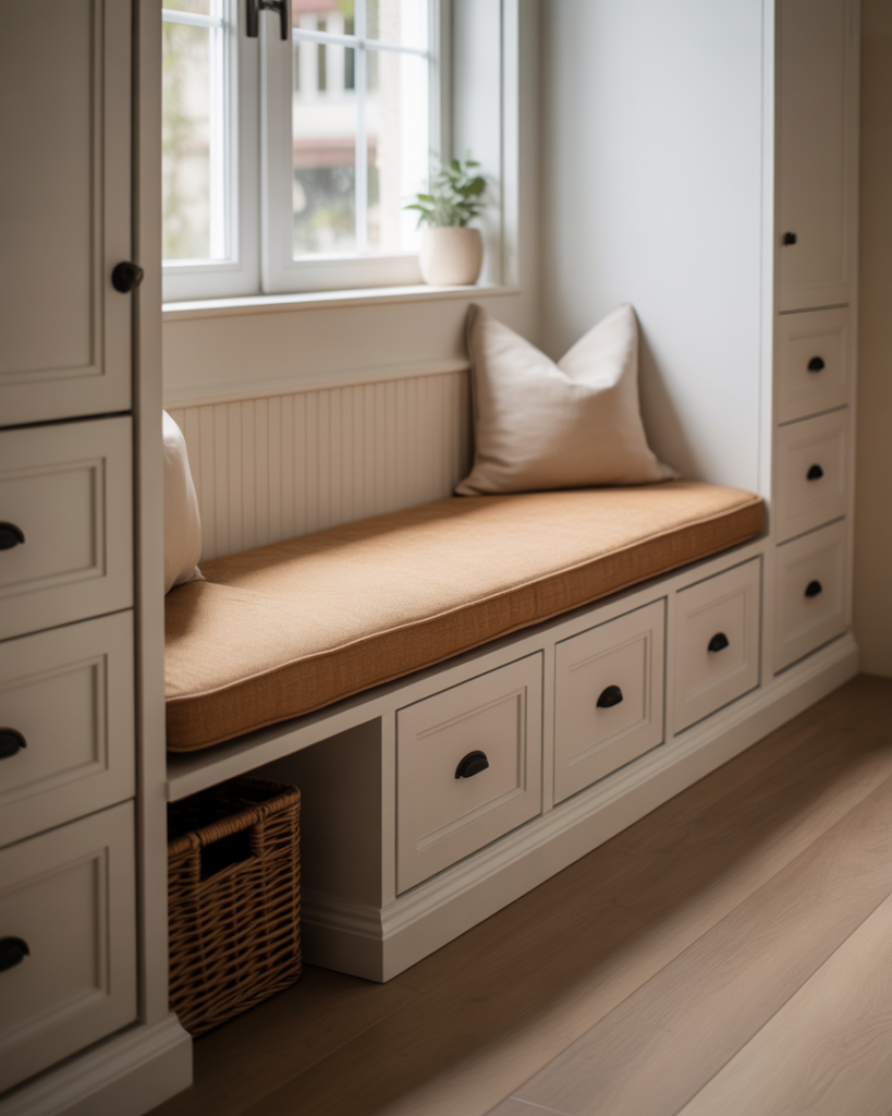 Smart storage is not just about aesthetics. It also improves how you move through your home. When storage is designed around your routines, everything becomes more efficient. Entryway benches with hidden compartments store shoes and bags, kitchen pull-out organizers make cooking easier, and bathroom storage towers keep essentials within reach without crowding countertops.