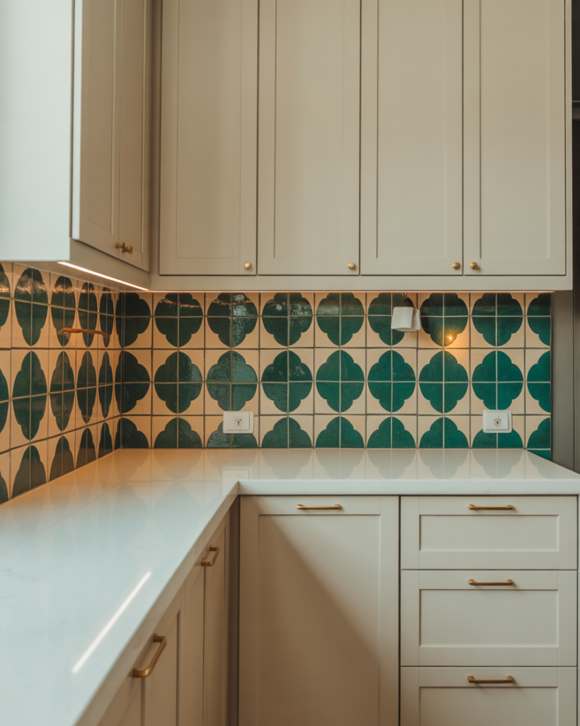 Another key trend is layering neutrals with subtle contrast. Soft whites, warm taupes, and muted greens paired with black or brass accents create depth without heaviness. Texture matters more than pattern in small kitchens, so think wood grain, stone, and handmade ceramics.