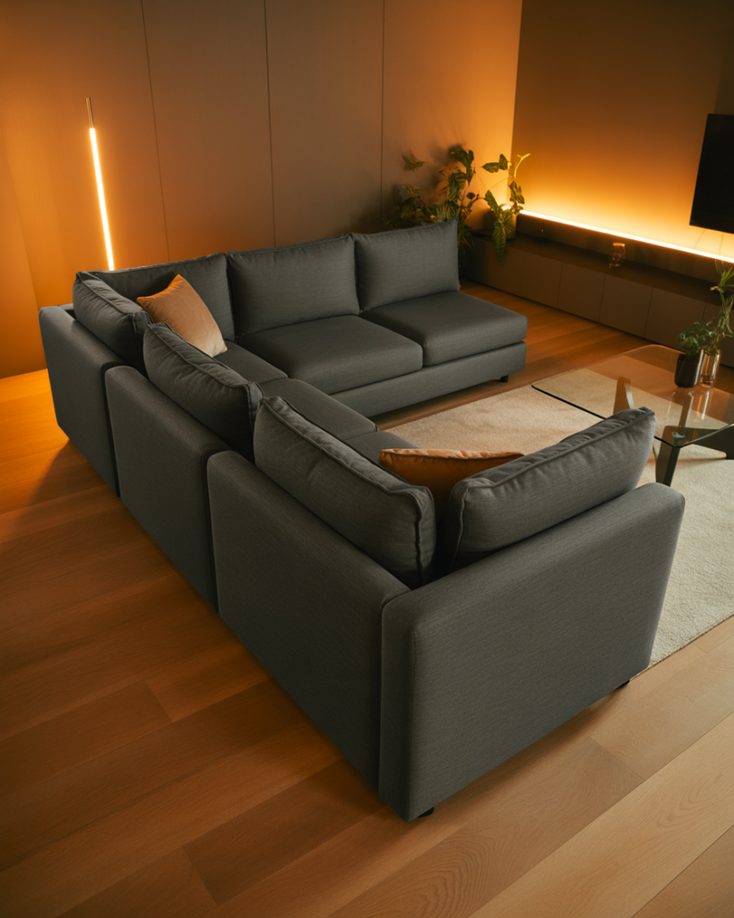 Modular seating is one of the smartest layout choices for small living rooms in 2025. These pieces can be rearranged depending on your needs, whether you are hosting friends, relaxing solo, or changing the room’s function entirely. This layout feels flexible and modern, which is perfect for renters or growing households. Instead of committing to one fixed arrangement, you can adjust the seating over time without replacing furniture.