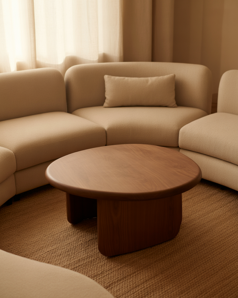 Rounded furniture is having a big moment in 2025, especially in small living rooms. Curved sofas, round coffee tables, and soft edges make tight spaces feel more fluid and welcoming. This layout helps improve movement through the room and reduces the harsh angles that can make small spaces feel boxed in. It is a great option if you want a modern look that still feels comfortable and lived in.