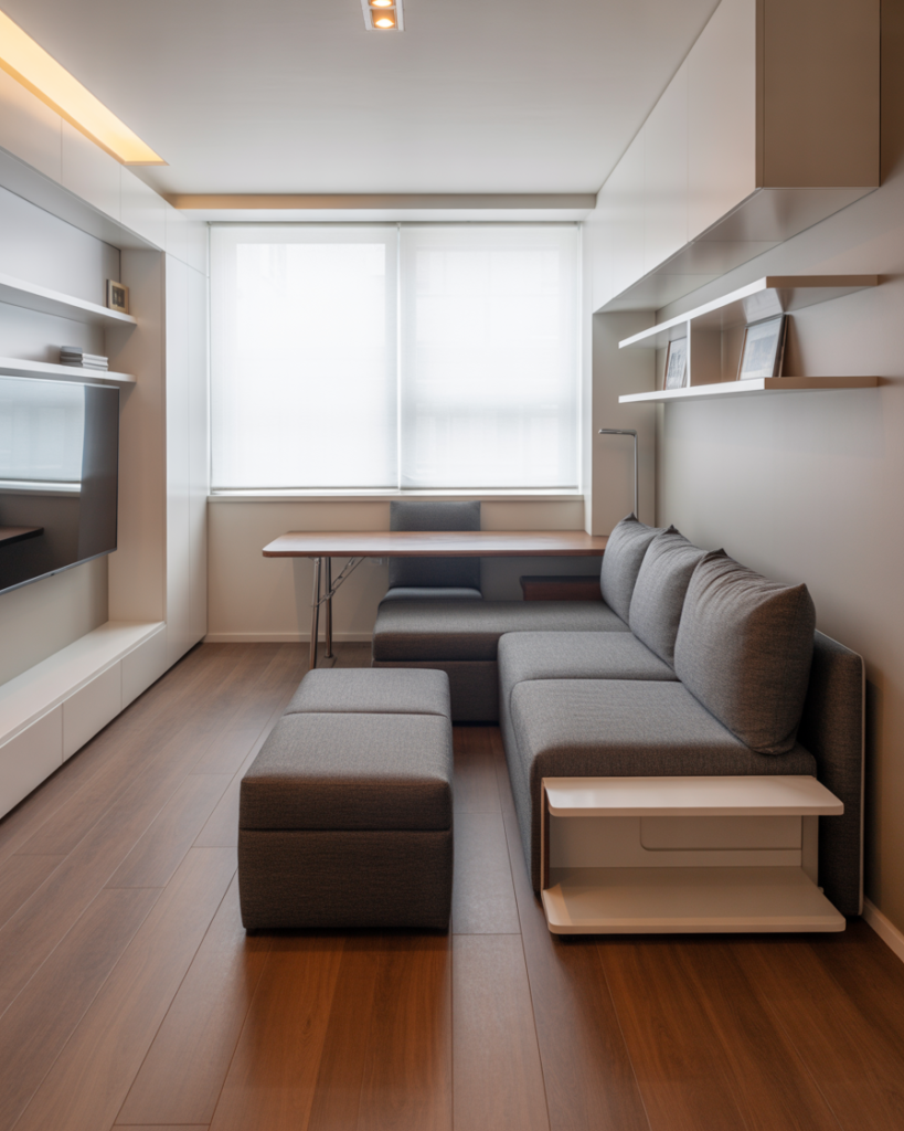 In a small living room, furniture that serves more than one purpose is essential. This layout uses pieces like storage ottomans, nesting tables, and benches with hidden compartments. Everything has a role, which keeps the room tidy and efficient. This approach is perfect for small apartments or family homes where storage and flexibility matter just as much as style.