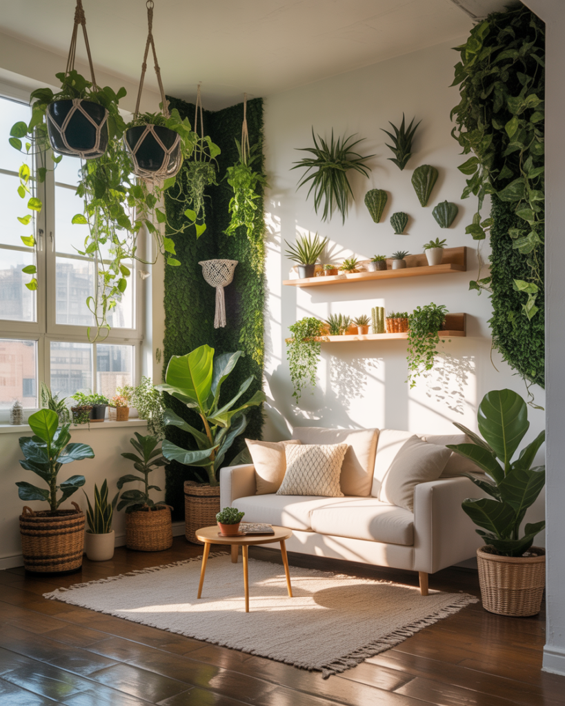 Plants continue to be a favorite design element, even in the smallest apartments. In 2025, the focus is on greenery that does not take up valuable floor space. Hanging planters, wall-mounted pots, and tall narrow plants bring life and freshness into apartments without cluttering them. Greenery softens modern interiors and makes a small home feel lived-in and welcoming.