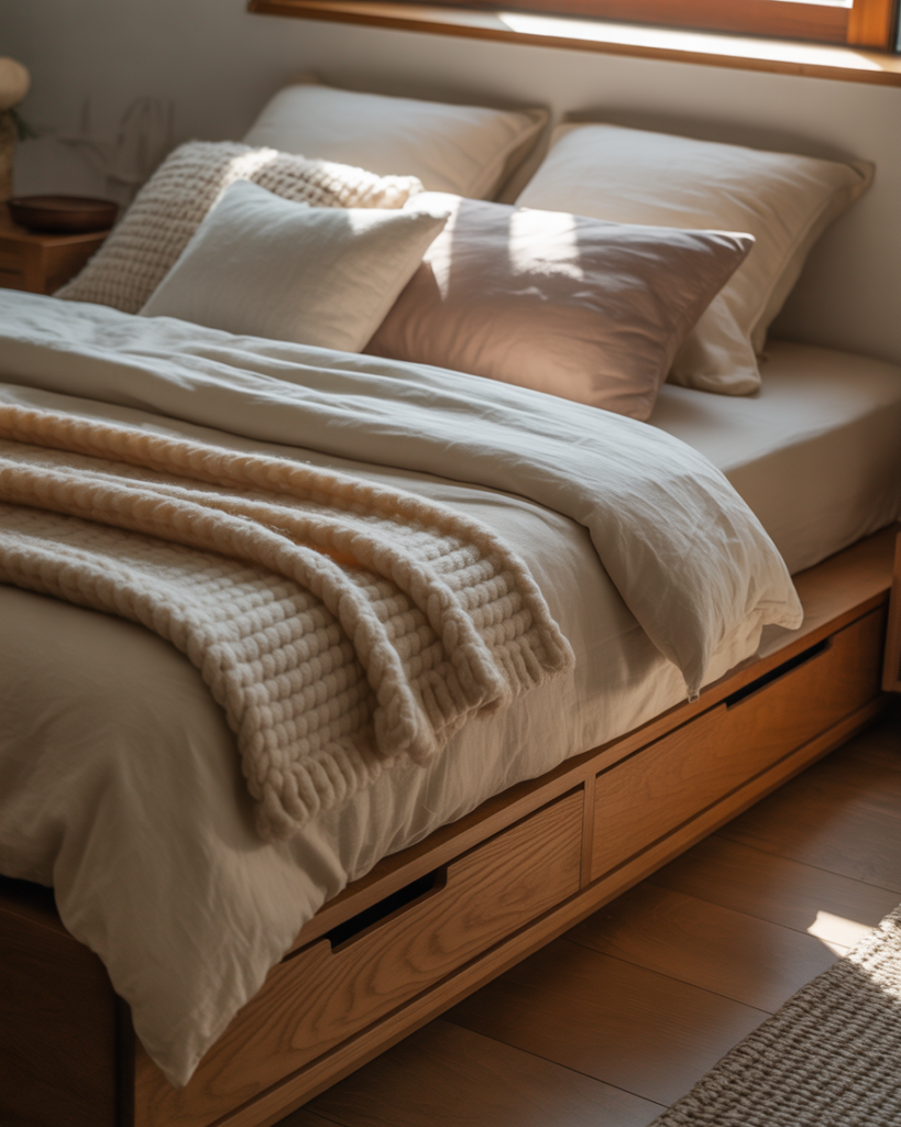 Under-bed storage has been around forever, but 2025 is all about making it seamless and intentional. Platform beds with built-in drawers give you a huge amount of hidden storage without adding extra furniture to the room. This is a game changer for small bedrooms with limited closets. You can store off-season clothing, extra bedding, or even shoes without ever seeing the clutter.