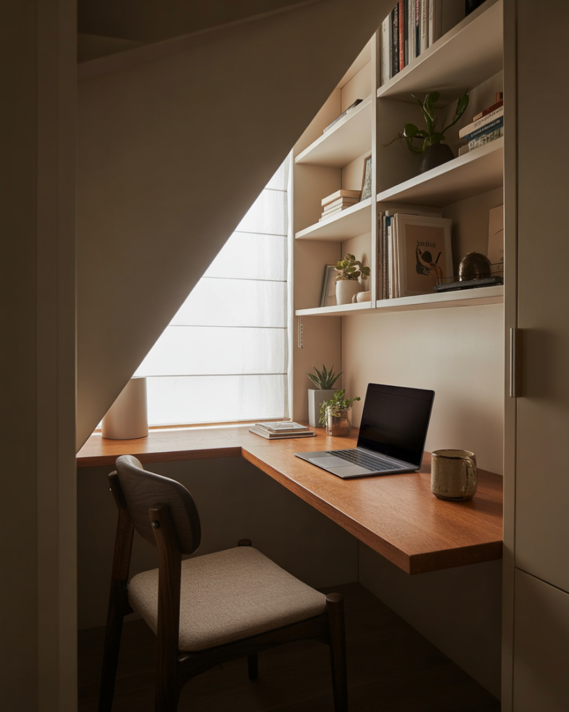 With more people working from home, compact workspaces are a must. Built-in desk and shelf combinations are perfect for small homes because they stack function vertically. You get a workspace, storage, and display all in one clean design. These setups work especially well in living rooms, bedrooms, or unused corners that need a purpose.